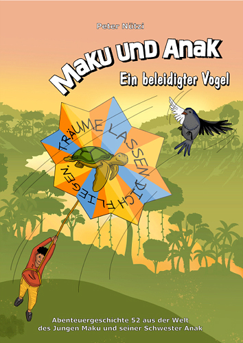 Maku baut mit Grossvaters Hilfe einen ganz besonderen, mehreckigen Drachen. In der Mitte des Drachens zeichnet Maku eine Schildkröte, und drumherum schreibt er in grossen Buchstaben: "Träume lassen dich fliegen". So ist es dann auch. Denn als Maku den Drachen zum ersten Mal steigen lässt, wird er von diesem in die Höhe gezogen. Dann ist da plötzlich dieser Vogel, der Maku ganz böse anschaut. Fliegt der Vogel wieder weg, oder wird es für Maku jetzt gefährlich?