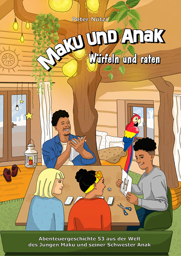 Maku hat ein neues Kartenspiel erfunden, bei dem man zuerst würfeln und dann raten muss. Er möchte es mit Anak, Rino und Lele spielen. Anak hat Lele angerufen, und nun sitzt Lele auch im Baumhaus am grossen Eichentisch. Maku hat Rino eingeladen. Der kann aber nicht kommen. Er muss seinem Vater helfen. Das Spiel besteht aus fünf Kartenstapeln, einem Würfel, Briefpapier und einer Schere. Was mag das für ein Spiel sein? Und wer gewinnt wohl am Schluss?