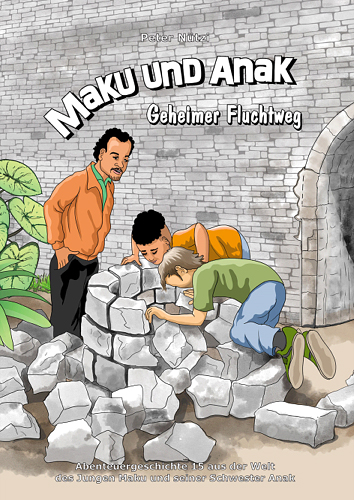 Dass es in der Piratenburg Adlerhorst einen Geheimgang gibt, davon sind Maku und Rino überzeugt. Mit Onkel Dizi gehen sie heute zur Burg und hoffen, dass er ihnen den geheimen Fluchtweg zeigt, wenn es überhaupt einen gibt. Im Innern der Piratenburg liegen überall Steinhaufen von eingestürzten Mauern. Von einem Geheimgang ist weit und breit nichts zu sehen. Doch dann macht sie Onkel Dizi auf etwas aufmerksam. Ist dort vielleicht der geheime Fluchtweg?