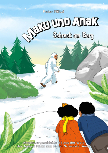 Maku und Anak freuen sich riesig heute mit Onkel Dizi schneeschuhwandern zu gehen. Doch kaum haben sie die Berge erreicht und mit dem Schneeschuhwandern begonnen, muss Onkel Dizi zurück zum Auto, um seine Fotokamera zu holen, wie er sagt. Maku und Anak warten ungeduldig auf einer Waldlichtung. Plötzlich sehen sie etwas Grosses mit weissem Fell eilig hinter einem Felsen verschwinden. Sie erschrecken gewaltig. Was war das jetzt, und kommt es wieder zurück?